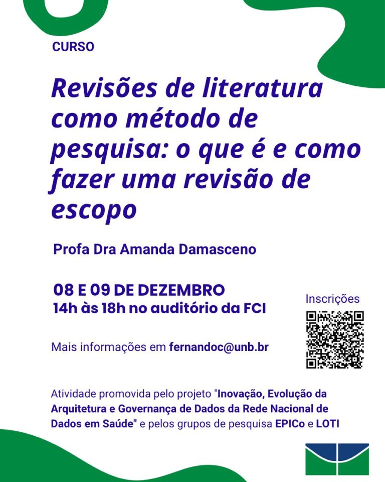 O Núcleo de Estudos e Práticas em Informação e Conhecimento (EPICo/FCI/UnB), com apoio do Laboratório de Organização e Tratamento da Informação (LOTI/FCI/UnB), promove o curso “Revisões de literatura como método de pesquisa: o que é e como fazer uma revisão…